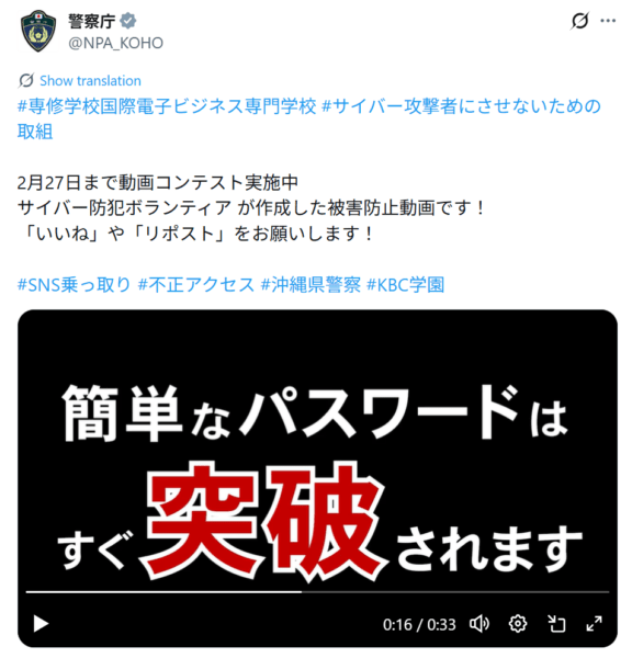 • サイバーセキュリティ動画コンテスト、リポストして応援しよう!