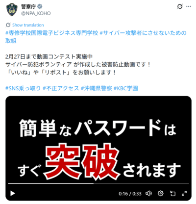 沖縄県警察は地元専門学校作成の動画で本審査に選出されました!
