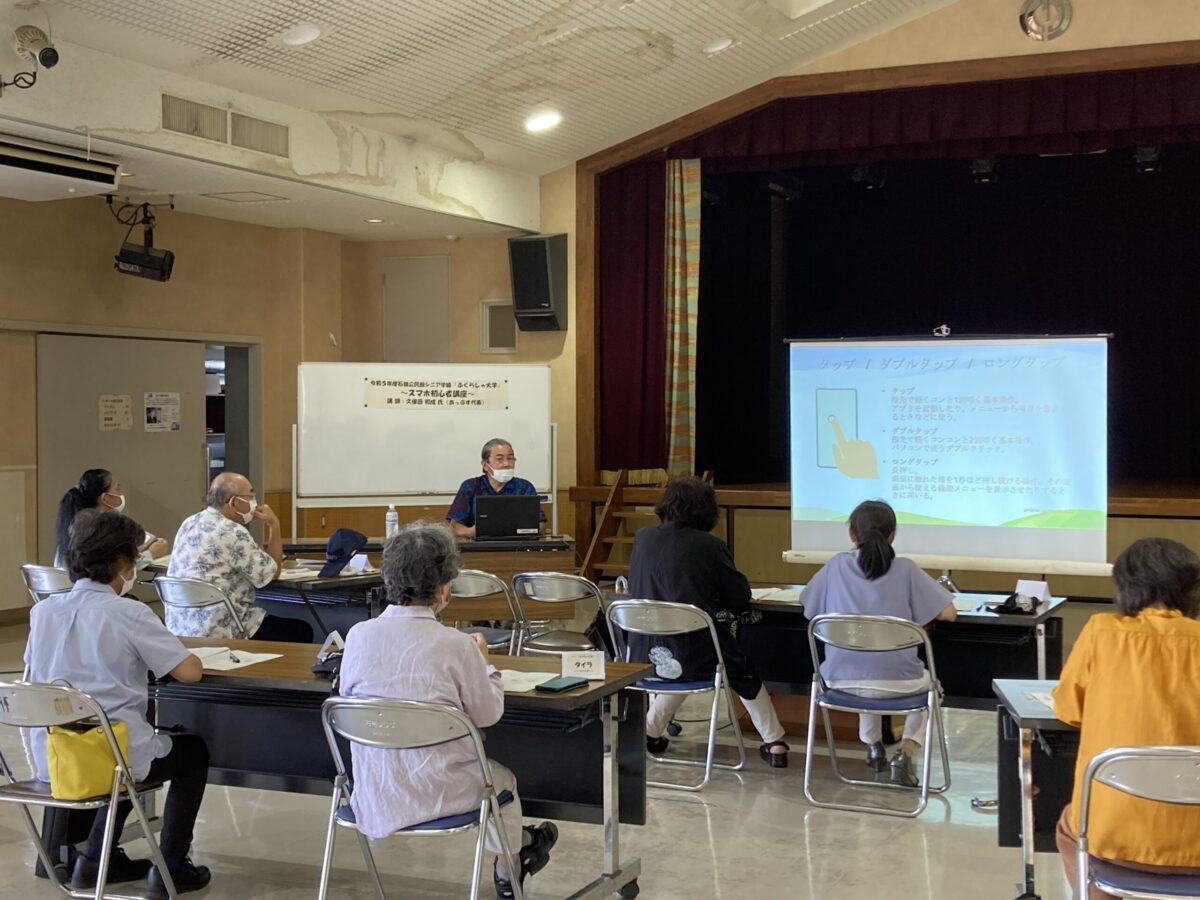 今や9割以上の方が利用しているスマホ。しかし便利な操作方法が分からず電話の着信専用機として持っている方も少なくない様です。この少ない期間で習得した内容は多くの方が「しっかり復習する!」との事でした。右の画像はGoogleレンズで検索のため撮影しているところです。また講座タイトルにある「ふくらしゃ」とは誇らしいという意味の方言との事でした。
