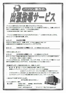 パソコン出張指導 2010年4月6日2015年10月24日 kobuta パソコン基本操作の個人向け出張指導サービスを行っています。 今回コース内容を一部変更したので、チラシを新しく作成しました。 サポート地域は沖縄県那覇市・浦添市・西原町・宜野湾市のみとしていますが、パソコンの基本操作を学びたいとお考えの方はお気軽にご相談ください。 PC出張指導チラシ 2011年版 共有: クリックして友達にメールでリンクを送信 (新しいウィンドウで開きます) メールアドレス クリックして X で共有 (新しいウィンドウで開きます) X クリックして Bluesky で共有 (新しいウィンドウで開きます) Bluesky 関連
