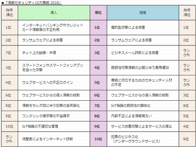 情報セキュリティ10大脅威 2018– IPA 独立行政法人 情報処理推進機構