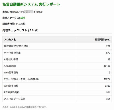 | テーマ重複防止 | 572 | 過去記事データベースを検索し、テーマの新鮮度を確認。 |