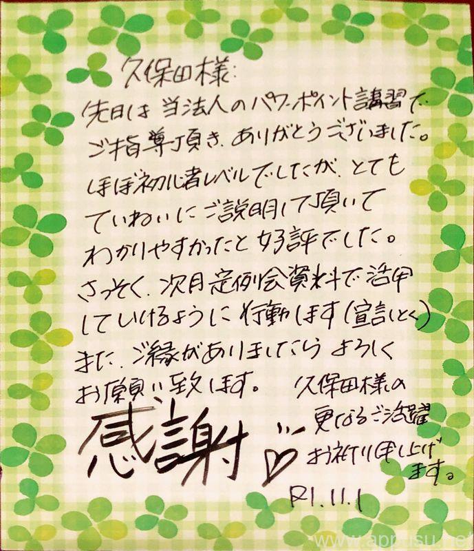 数日後,お礼状をいただきました。