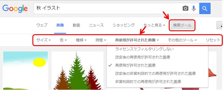 Google画像検索オプションでライセンスを絞り込む方法が紹介されていました。