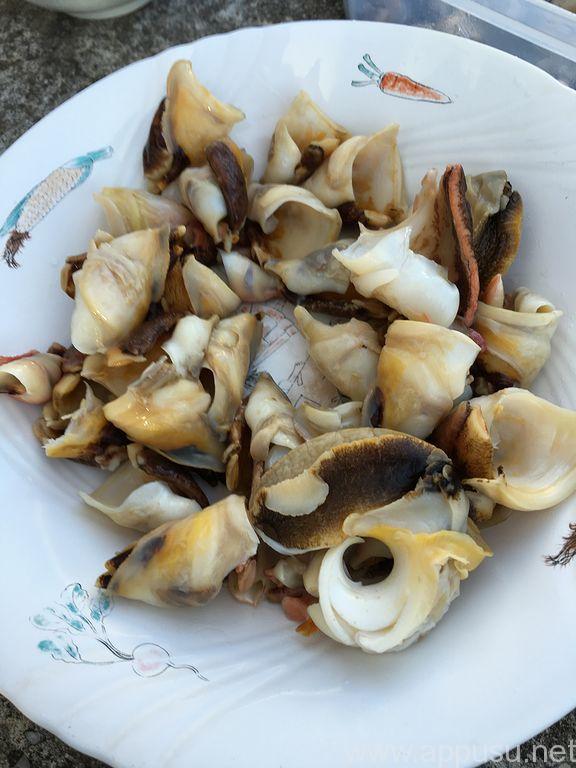サザエや三角貝の他,巻貝で鎌のようなツメが出ているヤツ等