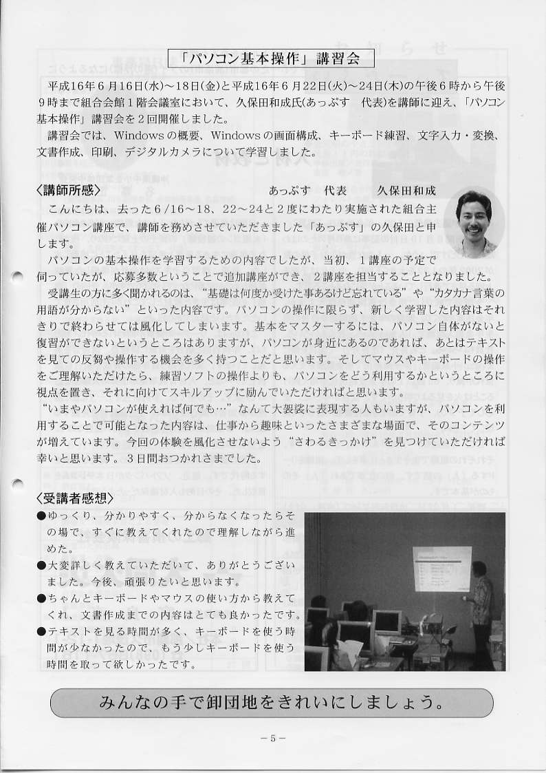 会報に掲載! 2004年7月15日2015年10月24日 Source Author 日ごろ講座依頼でお世話になっている沖縄県卸商業団地協同組合の会員向け機関誌に前月実施講座の所感を書かせていただきました。