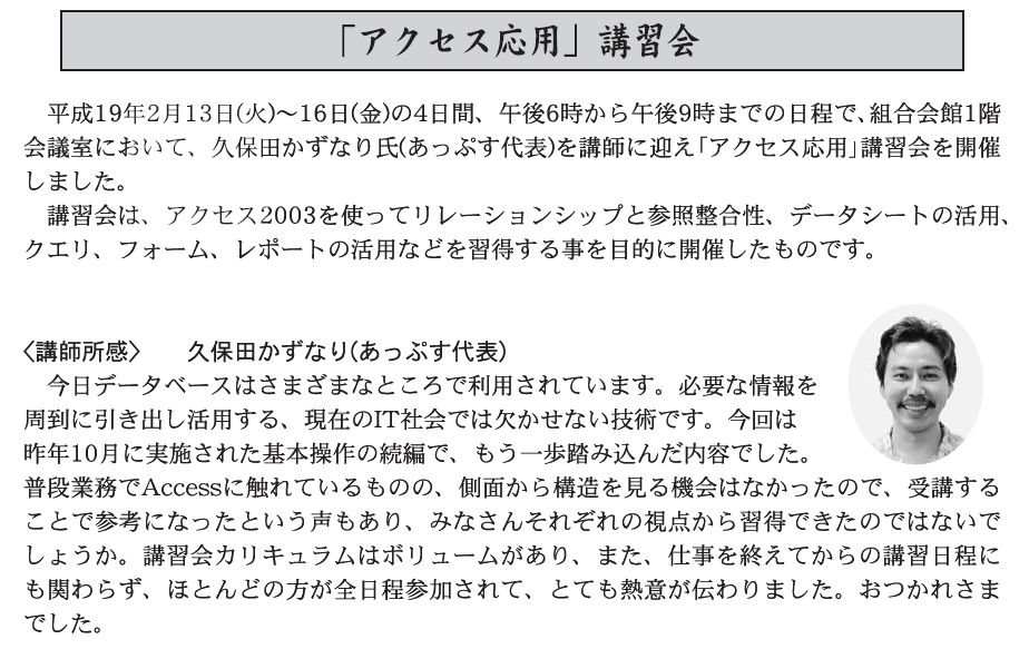 機関誌に掲載! 2007年3月15日2015年10月24日 Source Author 日ごろ講座依頼でお世話になっている沖縄県卸商業団地協同組合の会員向け機関誌に前月実施講座の所感を書かせていただきました。